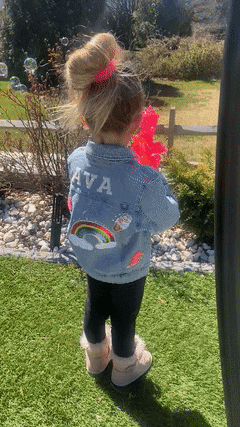 The custom denim kid jacket is the perfect gift for a the most stylish litter kids! Make your child’s day with our personalized blue denim jacket. Featuring their name, this jacket is a wardrobe staple that will never go out of style. A show stopper to wear to any & all of your special events- baby girl's party, flower girl for a wedding and so on.