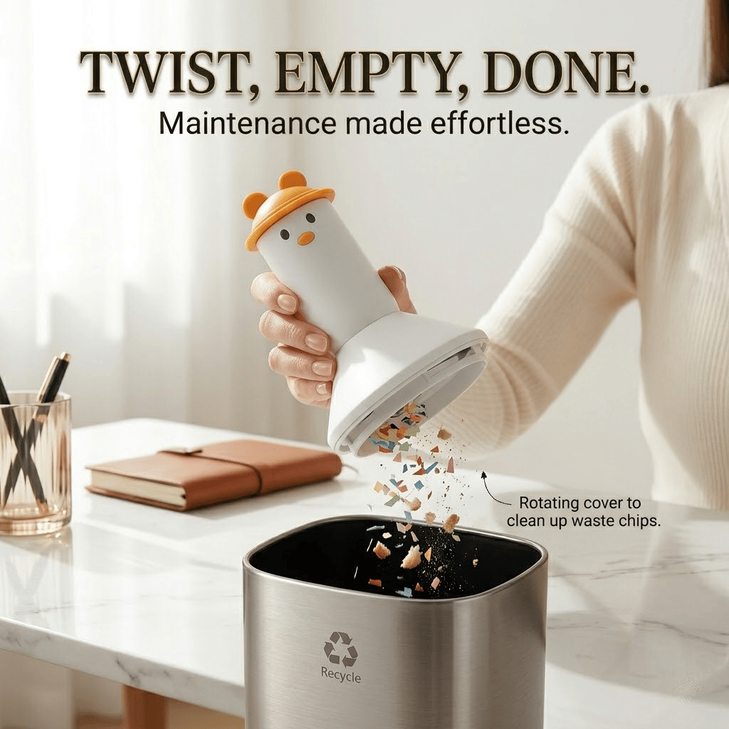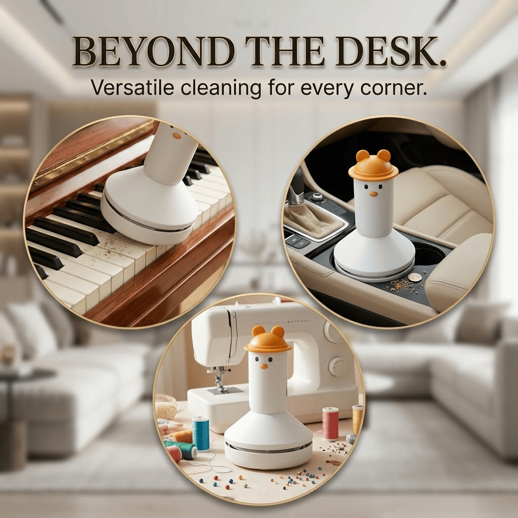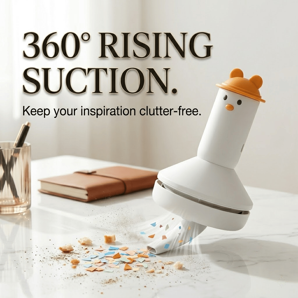 For the high-achiever, a desk is more than a surface—it is where inspiration takes flight. Yet, small distractions like crumbs, dust, or pencil shavings can break the flow of a productive morning. Traditional cleaning tools are too bulky for a refined office, and manual wiping often just spreads the mess.