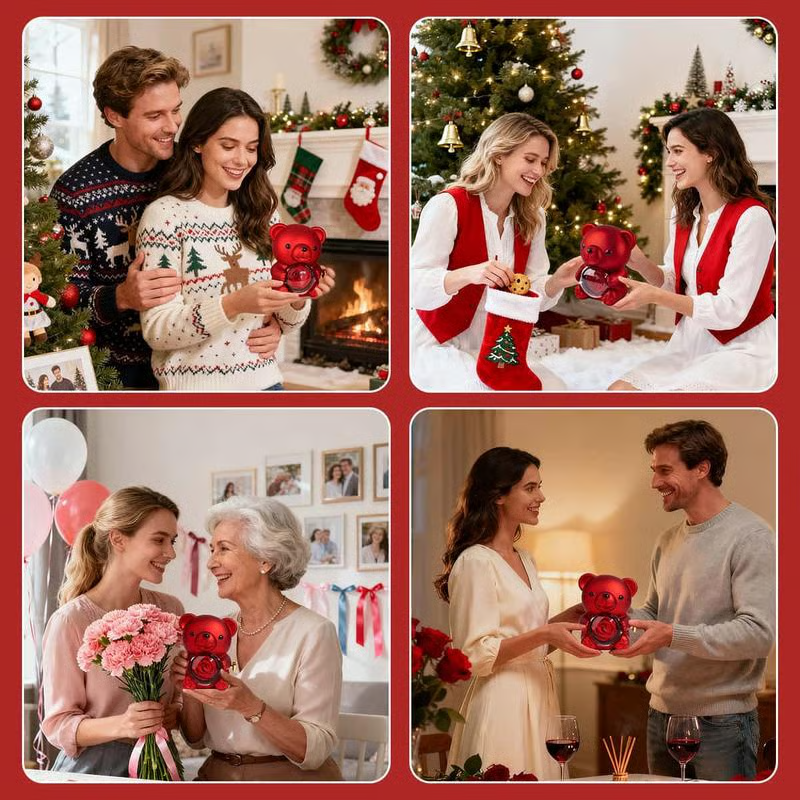 Unique & Cute Bear Design: The adorable teddy bear holds a stunning preserved rose inside a transparent plastic cover. Rotate the golden heart-shaped knob to reveal a hidden jewelry box behind the rose, adding an element of surprise for your beloved one!