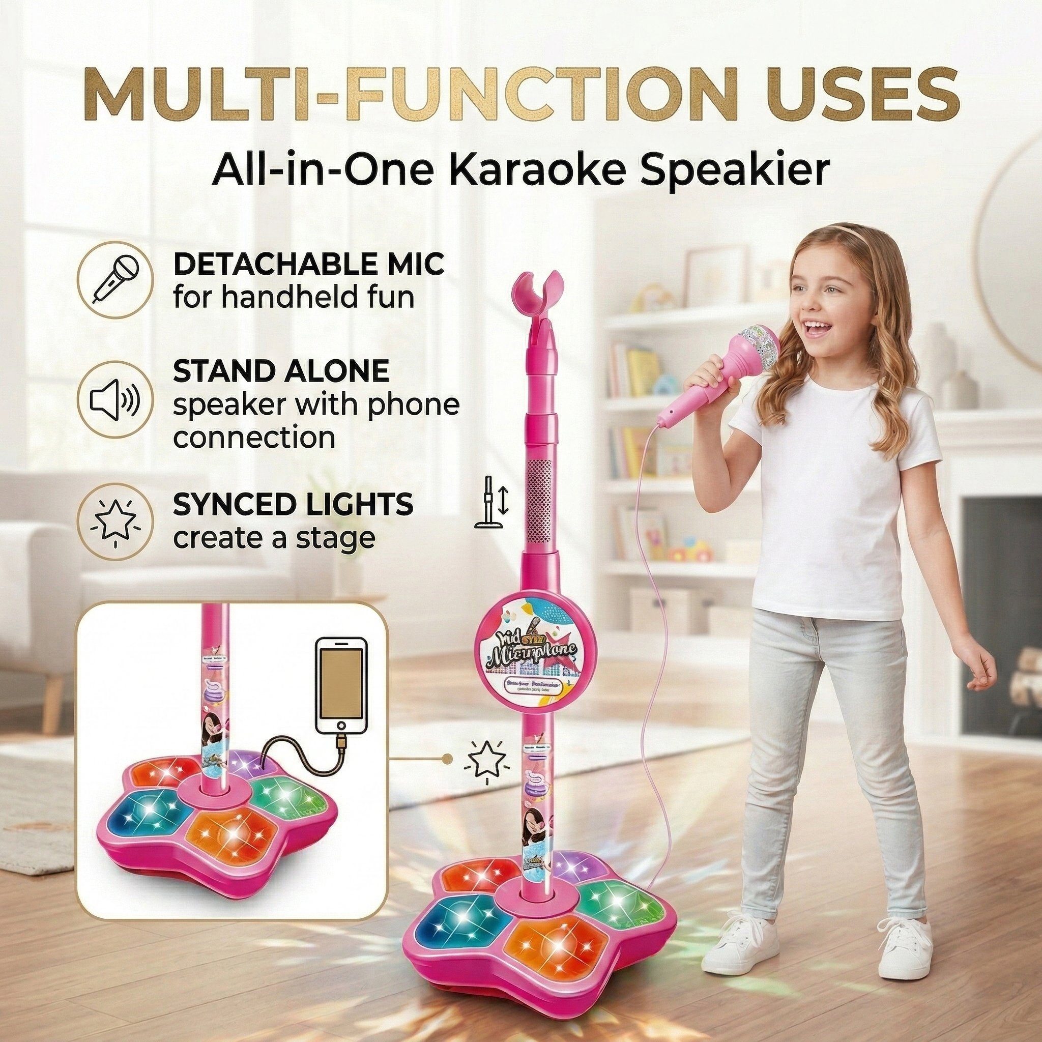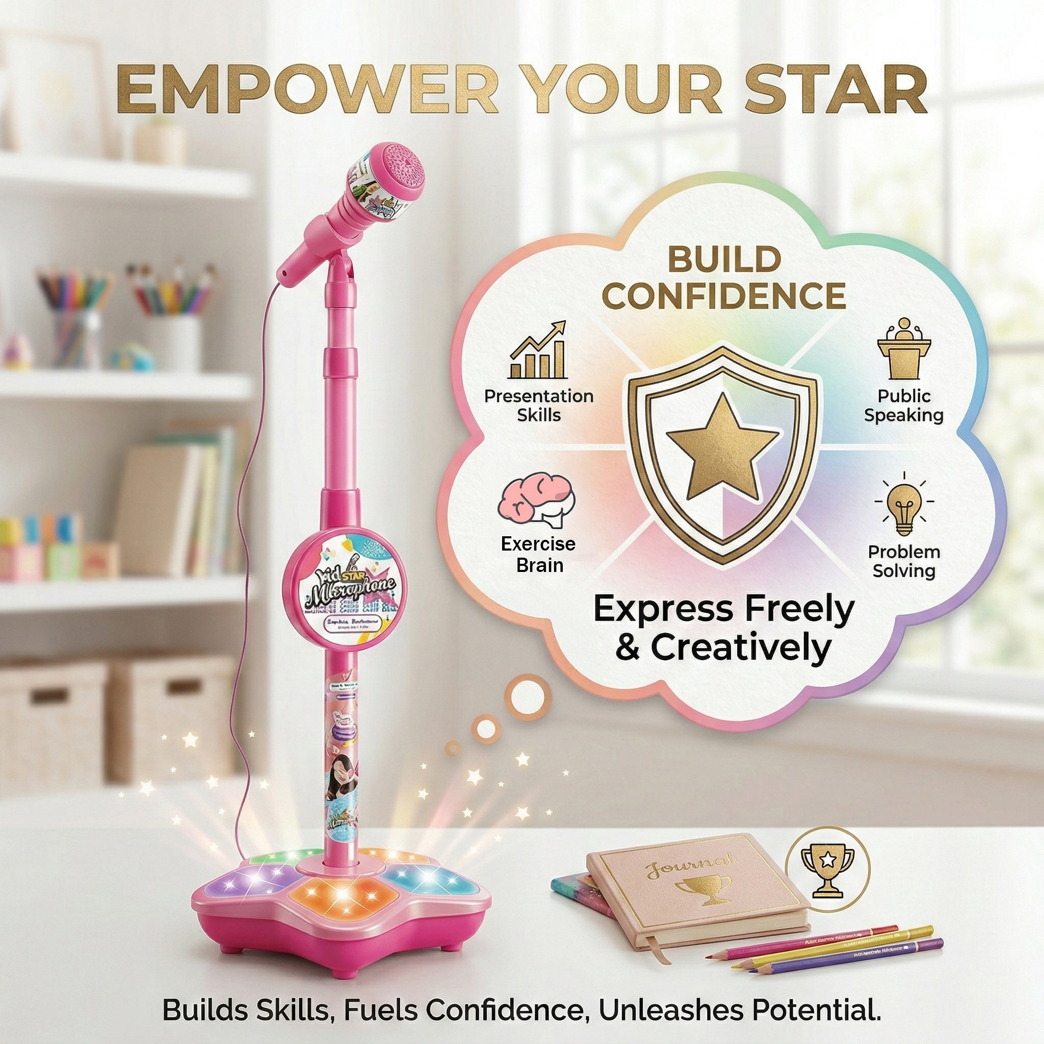 In an age of screens, give her a stage. The Star Stage isn't just a toy; it’s a developmental tool designed to help your child find her voice. Whether she is practicing for a school play, lead-singing her favorite movie soundtrack, or hosting a family talent show, this system provides the professional-quality environment she needs to flourish.