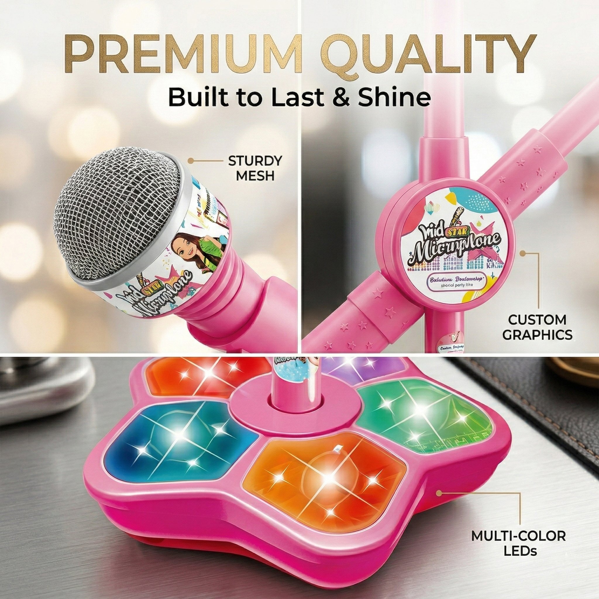 • 💎 Uncompromising Premium Quality: Crafted with a professional-grade sturdy mesh microphone and vibrant custom graphics, this system is built to withstand the energy of daily performances while looking elegant in any playroom.